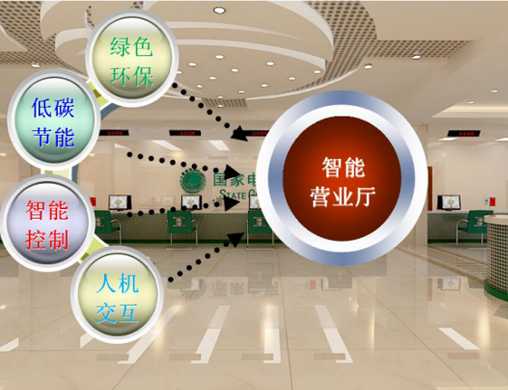 智能營業廳是綠色、智能、溫馨的一站式新概念智能電網成就展示平臺,是國家電網公司95598光明服務工程一面亮麗的旗幟。該解決方案按照“以客戶為中心”的設計理念,采用靜心的裝修設計,改進功能分區,借助信息通信、計算機網絡、智能控制等技術,構建實體、自助、網上和手機四位一體的多功能營業廳,實現服務智能化、互動化、多樣化感觀式服務體驗,為客戶提供靈活多樣的信息交互、業務受理、繳費靈活多樣的24小時服務。同時,該解決方案實現對營業廳可視化在線管理。