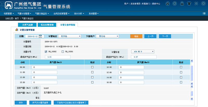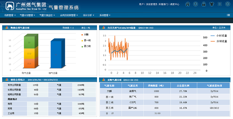 實現氣量管理的統計分析,包括氣量指定計劃分析、分銷戶結算氣量分析、氣量購氣分析、氣量計劃與執行分析、運行情況統計、運行流量統計、提氣速率分析、總量及門站誤差分析等。